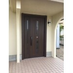 アルミ製の玄関ドアですが、木目調のショコラウォルナット色を選択し、イメージチェンジに大成功! 暖かい雰囲気のお家になりました。