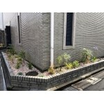メンテナンスし易い常緑の植物で、葉の形や色、花の咲く時期などに変化を持たせました。 その為、四季折々の季節を楽しむ花壇の植栽プランを配置、防草シートと化粧砂利で雑草にも配慮した花壇を作成しています。
