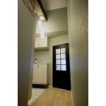 玄関が吹き抜けになったため、本来フロー(浮かす)タイプにすると天井に付いてしまうトールタイプの収納が、付きました。