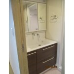 洗面台やトイレ、浴室はTOTOにて統一しました。 床のクッションフロア材や収納部表面シートは、 暖色を採用し、明るく温かみのある雰囲気にしました。
