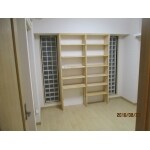 造作にて収納スペースを増やしました。 ガチャ柱により中板を留めているので、 高さや板の数を変更することができます。