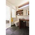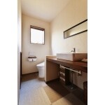 施工後の洗面脱衣室の様子です。 造作のカウンターを合わせたオリジナルの洗面化粧台が完成しました。