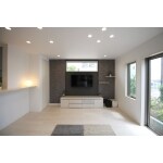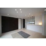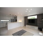 広々としたリビングは、壁紙の一部をチャコールグレーのエコカラットで仕上げることで引き締まった印象に。 キッチンカウンターの照明はお客様チョイスでとてもオシャレな雰囲気になりました。
