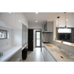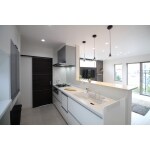 ペニンシュラ型は、調理中に家族との団らんを楽しみつつも、油汚れなどがリビングに飛びにくいのでオススメの施工方法です。