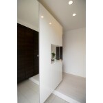 ホワイトでまとめたシンプルな雰囲気の玄関スペースです。 シューズボックス扉の一部をミラーに。お出かけ前の身だしなみチェックが楽ちんです。 玄関わきにたっぷり収納できるシューズインクローゼットを設置。ゴルフやスキーなどの大き目なレジャー用品も余裕で収納できます。 ハンガーパイプを設置したため、花粉や梅雨の時期にあまりお部屋に入れたくない上着などをかけておくこともでき、とても便利です!