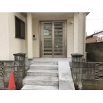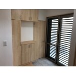 窓のない開き戸で玄関内が暗めだったので、採光のできる戸に替えたい、収納を増やしたい、自転車も玄関先に置きたいとのことでした。