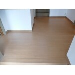 上張りフロアーで工期短縮、人件費削減。 既存巾木は生産終了品なので新たな床色と合うものに