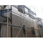 現地調査時、外壁 ALC部を中心に防水層の劣化により藻、苔の発生が見受けられ多少の割れもありました。 既存屋根材がニチハ製パミールAで中期の剥離が確認できます。脱落・雨漏り等に進行する前に対応する事をお奨め致しました。 破風は場所により表面塗膜の剥離が始まっておりました。