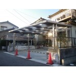 駐車スペースが台形なので、屋根の加工が出来る折半カーポート仕様にしました。