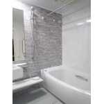 TOTO WGシリーズ Xタイプ1418にお取替え。 壁のアクセントパネルは「クレアライトグレー」というお色です。床も壁パネルに合わせてライトグレー色で統一しグレーを基調とした明るく高級感のあるユニットバスになりました。換気乾燥暖房機は既存を利用しました。