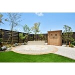 ダイニングから大きな窓があり、お庭とのつながりもある住宅でしたので、昼間は楽しむお庭として。また、夜はライトアップされた木々を眺め、癒されるプライベートガーデンを目指して施工させていただきました。楽しむための道具を直すための物置も設置。木々の成長とともに家族の繋がりも大きくなる。そんなお庭が出来上がりました。