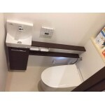 beforeのトイレにはなかった手洗器を設置し、快適なトイレ空間にリフォーム致しました。 タンクがない分、奥のほうまで手が届き、お手入れしやすいです。また、クロスとCFの張替えも同時に行いました。