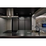 以前の間取りは、この開放的な空間に対して居室とクローゼットがあり、さらに奥に進むと居室が3つありました。どちらの空間もスケルトンにして、LDKは17帖の大きな空間に変わり、奥の部屋はシアタールームと和室に変わり今までの空間とはガラリと印象を変えました。 キッチンは配水の関係で床が上がっていますが、これを逆手に取り開放的な空間に対して、床でリビングと差別化をしています。ステージ上で料理しているような感覚になり、今までより料理をすることが特別な時間に感じていただけるでしょう。また、天井も配管の兼ね合いでリビングと比べると一部下がっています。こちらは、あえて下がっている部分のみにアクセントクロスを貼ることで、よりキッチンがリビング空間の中で目立ち、キッチンがメインの空間となります。