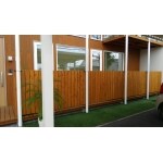 住宅の雰囲気を損なう事が無い様に木フェンスは床のデッキ材と合わせて工事しました、ブロック塀も住宅のジョリパット塗装と合わせて施工
