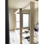 扉全部を壁の裏に引き込めるような敷居を造作で作りました。