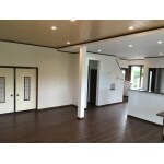 元々ダイニング・廊下・和室を広々31帖のLDKに大変身! 広いお部屋でも室内の温度差が少ない床暖房を採用頂いたので冬でも快適生活。 天井材に銘木のタモ材を使用。気品と風格を演出してくれます。