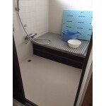 ・床タイルの上から貼れるクッション性の高い床材を貼る ・洗面台の下に小型電気温水器を設置し、お湯が出るようにする