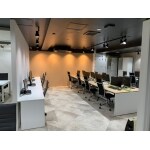 お話を伺いましたところ、こちらの壁面には社員の皆様が手書きでメッセージなどを描かれるとのこと。 また、天井をチャコールグレーに塗装することで、以前よりもスマートな印象へと変わりました。既存ともマッチしており、天井が濃いカラーでも重く感じず、気持ちも上がるおしゃれで明るいオフィスに仕上がりました。