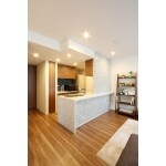 キッチン周りはタイル貼りとし、デザイン性とメンテナンス性を向上させたい。