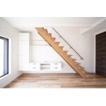 階段したのスペースを活かし、壁付けボードを設置することでリビングの有効スペースが広くなりました。