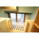 ・背中越しに仕切りを立て、お互いのプライベートスペースを作りました。ベットの入口も仕切り越しに別々に作り、お互いが接触することなく移動することが出来ます。 ・お客様のご要望通り、洗面台の下は収納棚ではなく大きな空きスペースを確保しました。
