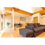 梁は通常カビや汚れが付着しているため黒やこげ茶に塗装しますが、今回はあえてクリア塗装としました。 築47年の風合いをそのまま活かした梁の存在感が、空間に重厚感と安らぎを与えてくれています。