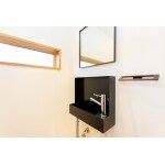 手洗いと鏡はデザイン性の高いサンワカンパニーより採用。