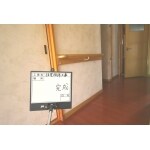 廊下の角の所に縦手すりを設置します。 設置場所は養生テープを貼って高さなどの確認をしていただきます。