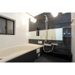 雨の日や花粉が気になる時期でも洗濯物が干せる、浴室乾燥暖房機付き。 横長の鏡で浴室内がより広く感じられます。