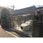 お荷物を降ろすときや乗り込む際に濡れないよう、大きなカーポートを取り付けました。 また、正面には電動シャッターを付け、防犯性をあげつつ風通しのよい駐車スペースになりました。