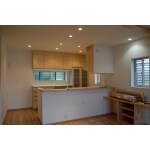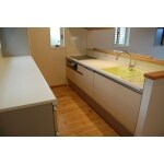 キッチンにはトクラスを採用 人造大理石を得意とするメーカーで、汚れ・キズ・衝撃・熱に強いものを使用しています。 背面のカップボードも同じくトクラスを採用しているので、一体感のあるキッチンができました。