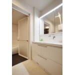 まずは間取りのご提案、部屋数を減らし夫婦2人の為に必要な部屋数、大きさをお客様と一緒にご相談させていただきました。 天井もできる限り高くし、建具も通常の高さより高いものを採用、お風呂も大きくし、ゆったり足を延ばして入れるお風呂をご提案。 マンションにありがちな結露対策も湿気を吸い取る建材を各お部屋に配置しました。