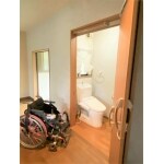 段差を解消し、トイレは、開口部を広くとれる3枚扉にすることによって自力でトイレに行けるようになった。