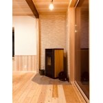 玄関側廊下の一部を前室とすることで、マッサージチェアを置き寛ぎ空間となりました。縁側部分は梁の補強で開口部を広く取り、リビングスぺースにゆとりが生まれ、飼い猫の日光浴スペースとしても活きています。部屋の角にペレットストーブを設け、改修後の1階全体を温める効果を発揮しています。