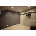 ホワイト・グレー・ダークグレーで構成された、サッパリとしてシャープな雰囲気の洋室に仕上げました。 お住まいの構造上斜めの梁が出ているデッドスペースには造作カウンターを設置し、落ち着く作業場所に。