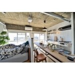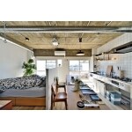 壁紙が新しくなったこともありますが、壁を取り払ったことで空間全体に光を取り込み、お部屋全体が明るく軽い仕上がりに。 しかしながら腰壁で採光のじゃまをすることなく、寝室的なエリアとダイニングキッチンの区別をつけています。