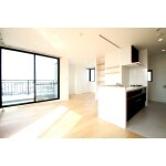 窓がとても大きく明るいリビング空間。武蔵小山の街を一望できる素敵な開放感ある空間に。キッチンで作業していたり、家族で団らんしているときも、ずっとこの街の景色を眺めて生活できるK様ご家族にとって至福のときである。大きな窓から入る光で、白いクロスやオークのフローリングがとても綺麗で安心できる空間です。