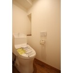 落ち着きのあるナラ材の無垢フローリングトイレ