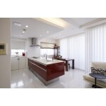 キッチンスペースはリビングと壁で間仕切られ孤立した空間になっており、収納スペースも上手く活用できておらず物が溢れていました。 そこでキッチン周辺の壁を取り払い、LDKが広々と開放的な印象になるプランを提案致しました。 そこへ設置したのは華やかなルージュレッドが目を引き、施主様が何度もメーカーショールームへ足を運び決められたPanasonicのLクラスです。お考えであった高級感のあるデザインとスッキリとできる大容量の収納が決め手にとなり採用しました。 白を基調とした内装で、ルージュレッドのインパクトのある色はお部屋の主役となりました。 さらにキッチン背面にはカップボード・冷蔵庫などを収めるパントリーを提案しました。間仕切っている引き戸は透明感のあるガラスを使用し、圧迫感を軽減させ、色鮮やかなルージュレッドが演出する高級感が見事に融合する空間となりました。