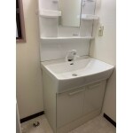 修理が出来なかった洗面化粧台。お母様の使い勝手を考慮しシンプルなタイプにしました。