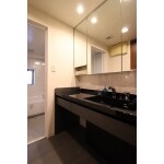 黒の洗面化粧台になり雰囲気が一気に変わりました。