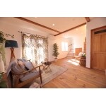 木本来の色や風合いを活かした仕上げで、まるでカフェのような、おしゃれな雰囲気のリビングに仕上がりました。漆喰の白と木の色が、やさしくあたたかな印象です。