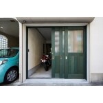 店舗用のガラス戸を造作の引戸に交換しました。光が入り中が丸見えにならず前開口することができるので、ご主人様愛用のバイクの出し入れもしやすくなりました。グリーンの色が目を惹くカフェのようなガレージの入口になりました。
