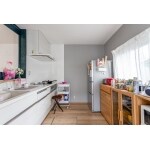 壁付から対面へキッチンのリフォームをしました。冷蔵庫の位置も近くなり、家事効率も向上します。 扉色など最後まで悩まれていましたが、床色やダイニングとの境の窓枠との調和を見て、グロッシーバーチをお選びいただきました。シンク内もベージュの人造大理石で、キッチン全体で統一感があります。 採光性のある、明るいキッチンになりました。