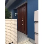 アルミ色で親子ドアの開き勝手に難がある玄関ドアをデザインを変えると同時に使いやすくしたい。防犯性も強化したい。