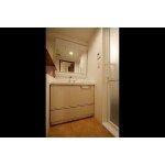 ウッド調を匂わせるカラーリングで統一したサニタリー