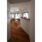 お料理好きのA様がご親戚から譲り受けたマンションは、湘南の海も遠望できる南西向きの角部屋。4連の窓からの採光を活かすため、和室やキッチンの間仕切り壁を撤去し、開放的なLDKをつくりました。ポイントは建物の形状にあわせてデザインした「へ」の字型キッチンです。周囲をぐるりと回れるアイランド型とし、水や油の飛び散りを防ぐ前壁をつけました。斜めの配置によってキッチンの裏手を隠し、LDKに奥行き感も与えています。変形プランを巧みに住みこなす設計です。