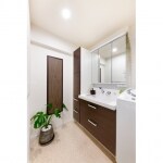 たっぷりの収納スペースを確保した広々とした洗面空間に!