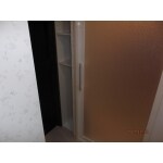 浴室入口横に新たに洗面室入口と収納棚を設置
