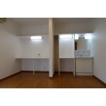 隣室のクローゼットだった部分を施術室側へ取り込み、メイクコーナーと洗面コーナー、洋服掛けスペースができました。